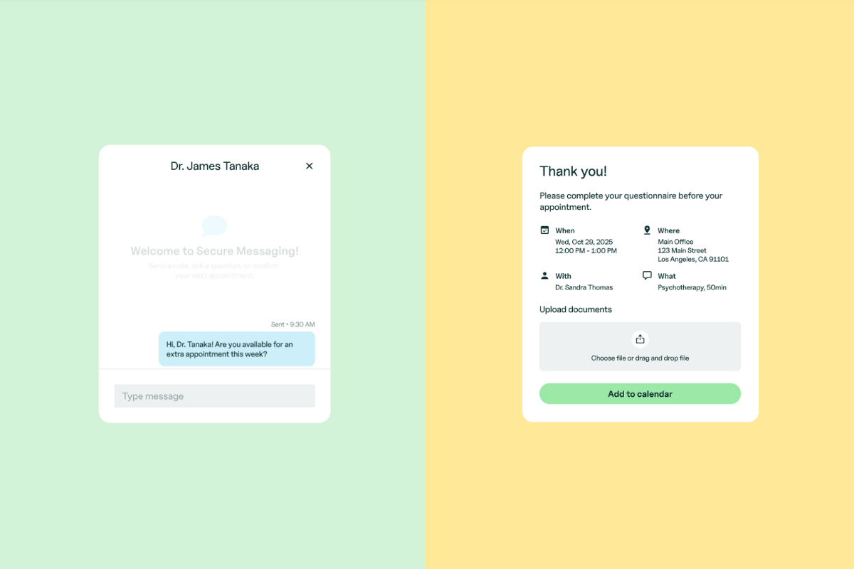 With SimplePractice’s automated intake flow, if a new client reaches out while you’re gone, they can still: